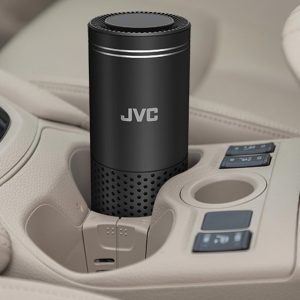 Mobil légtisztító, HEPA-szűrő 3-fokozatú szűréssel és ionizálóval, rögzíti a levegőben lévő részecskék 99,5%-át, szagtalanítás, mozgással aktiválható kezelőszervek, illeszkedik a járműpohártartóhoz.