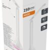 A féynerő 3 lépésben állítható, az érintésérzékelő kontrollgomb segítségével. A lámpa nyak 360°-ban forgatható. A termék elérhető fehér színben. A csomagolás tartalmazza a hálózati adaptert.